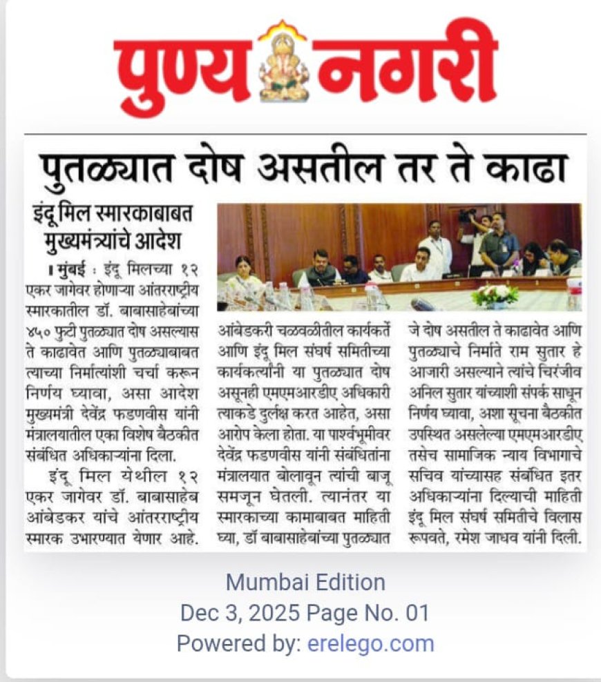 इंदू मिल येथे बाबासाहेबांच्या 450 फूट पुतळ्यात तांत्रिक त्रुटींचा आरोप; स्मारक समितीने अधिकाऱ्यांकडे गंभीर मुद्दे उपस्थित केले.